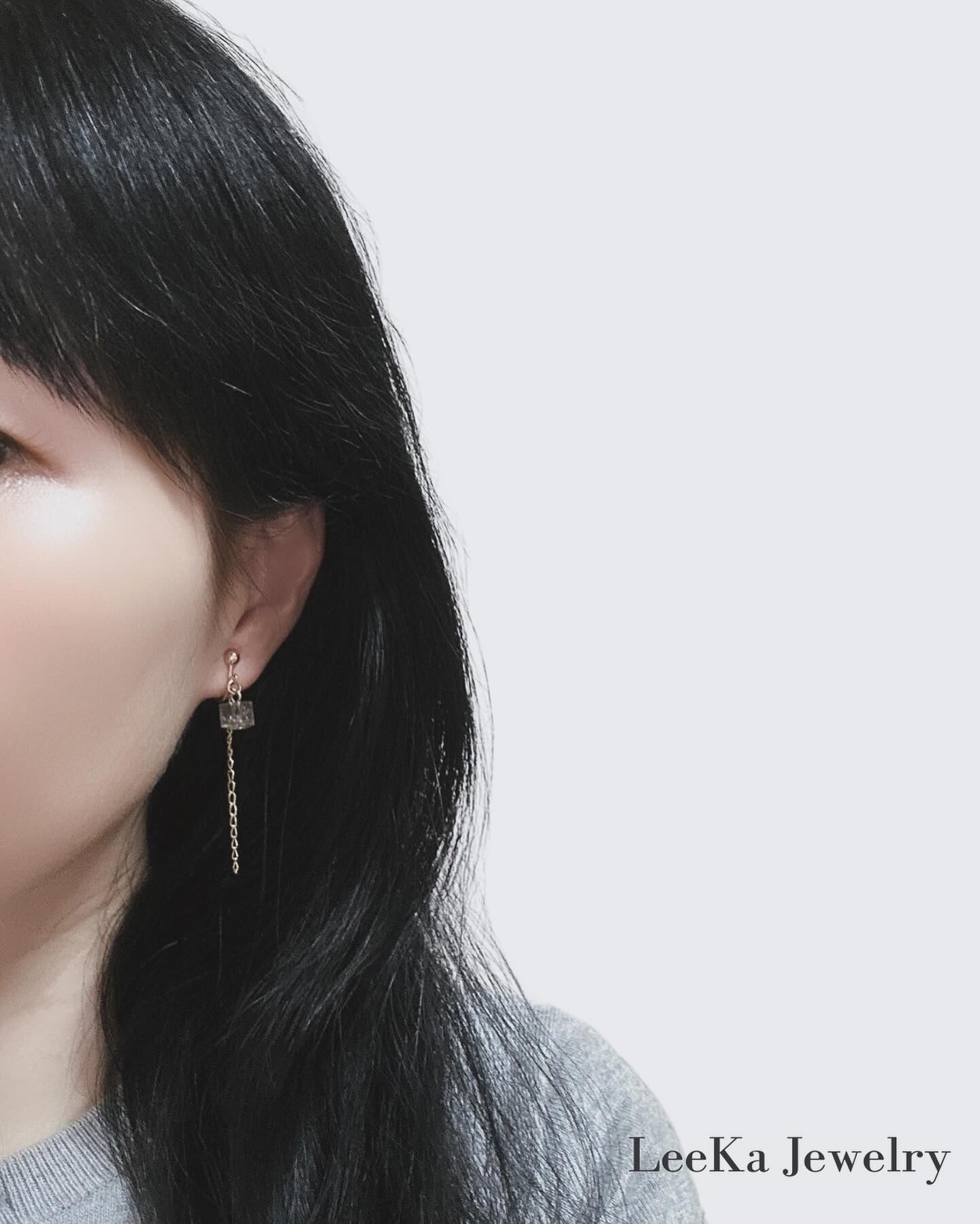 天然石のスモーキークォーツの小さなドロップに繊細チェーンをデザインしたイヤリング・ピアス♡