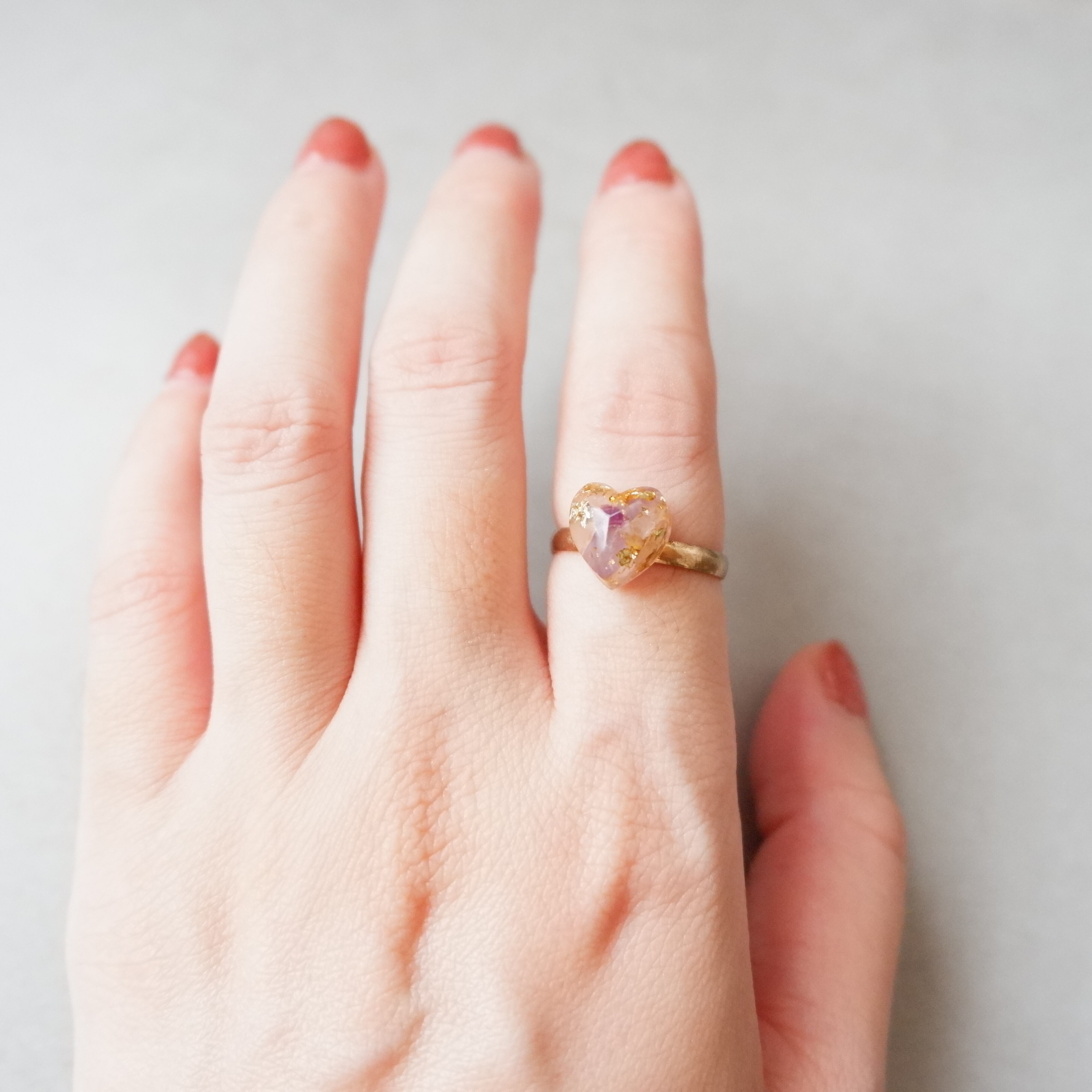 素材:金属、レジン、天然石(アメジスト、ローズクォーツ)、金箔