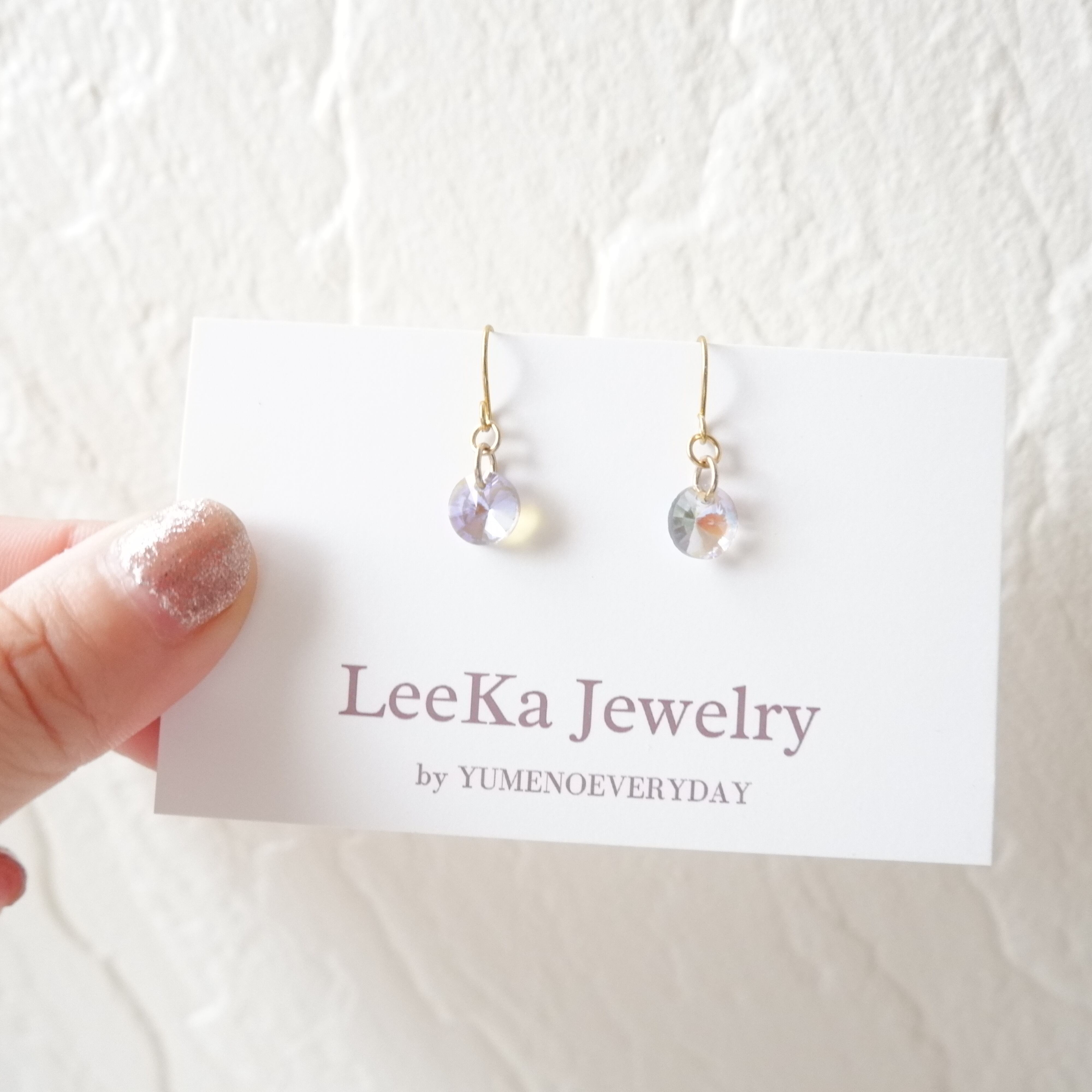 小ぶりなキラキと透明感がありながらもくすみパープルに輝くクリスタルガラスが落ち着いていて可愛い♪