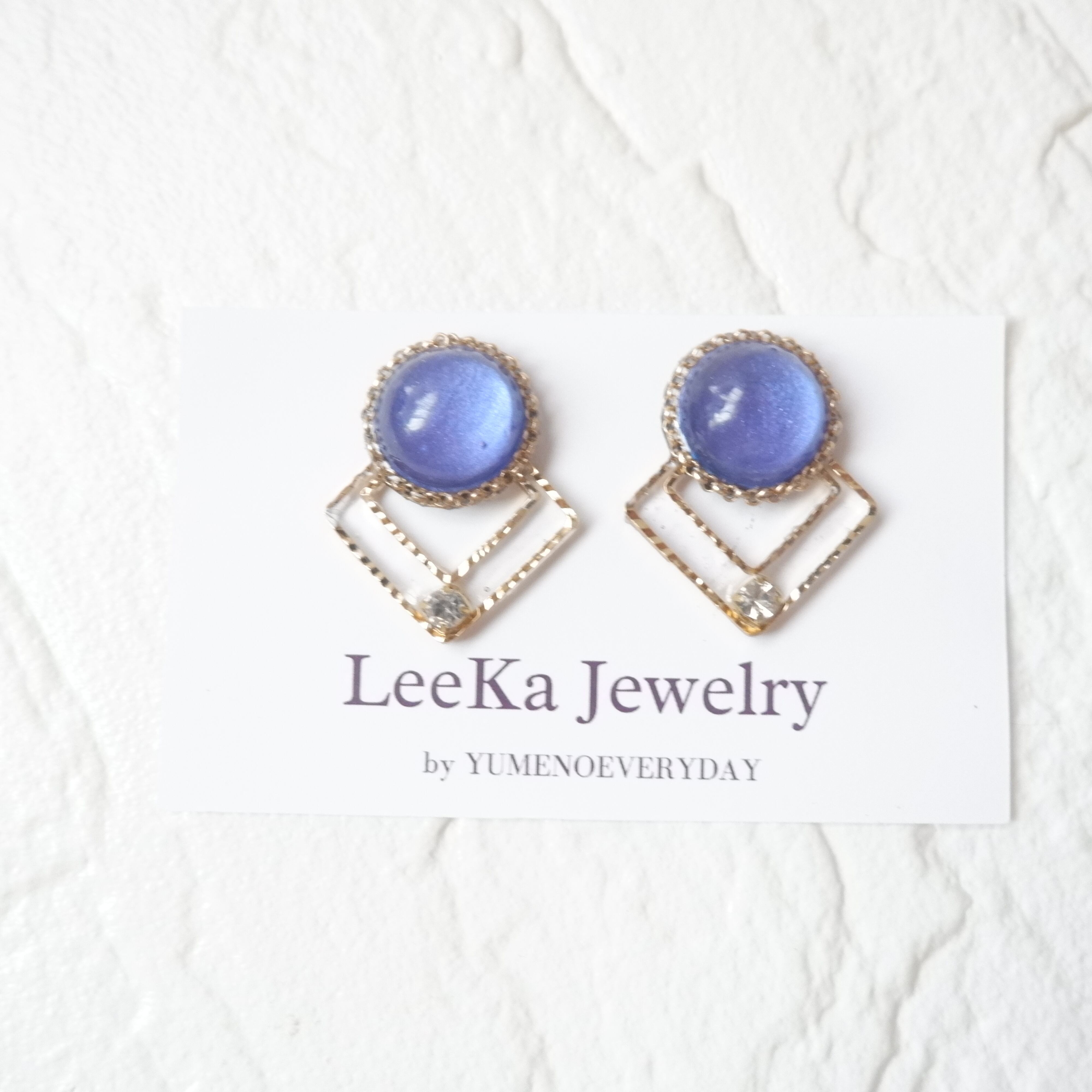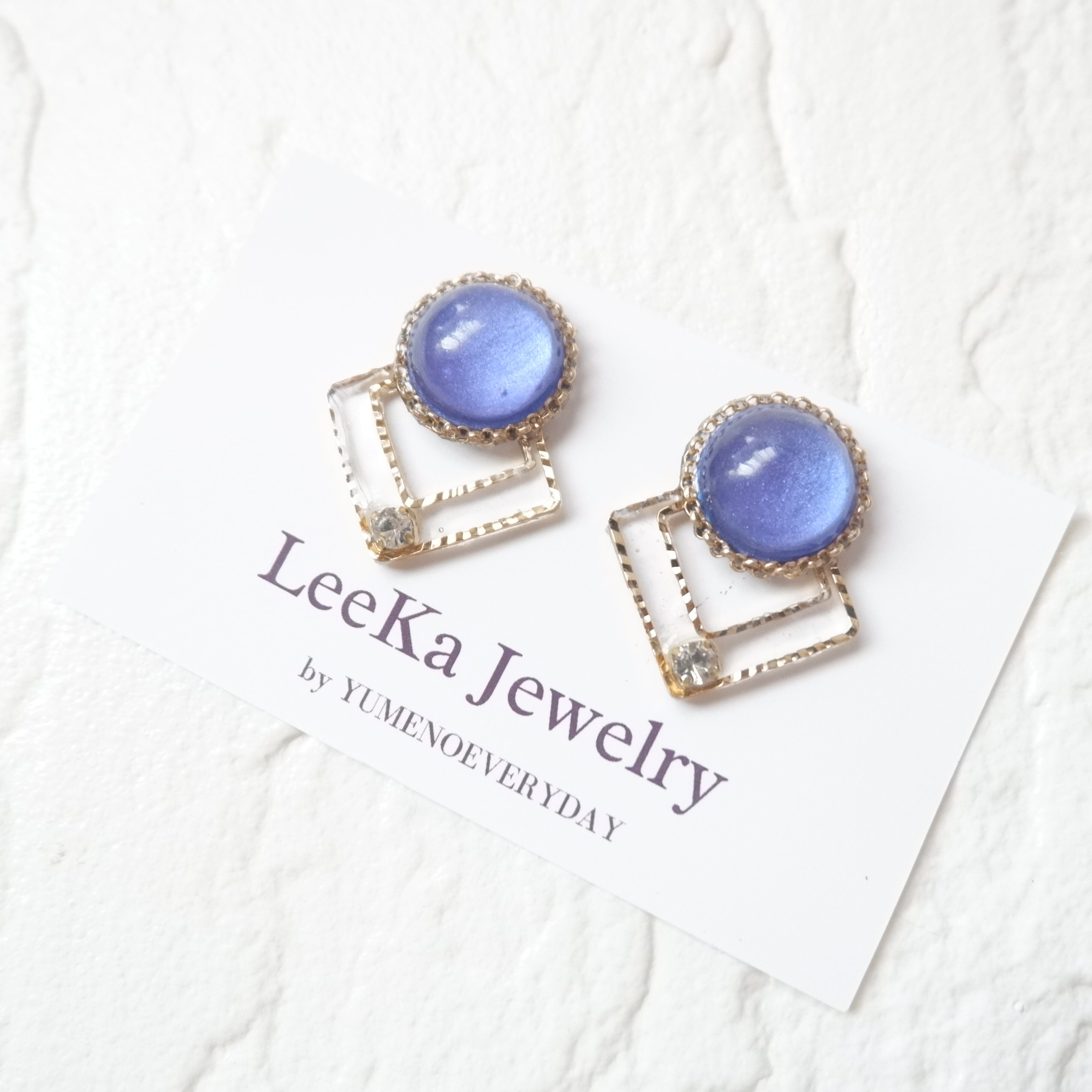 2つのスクエアに透明なレジンを流しクリスタルガラスを一粒。