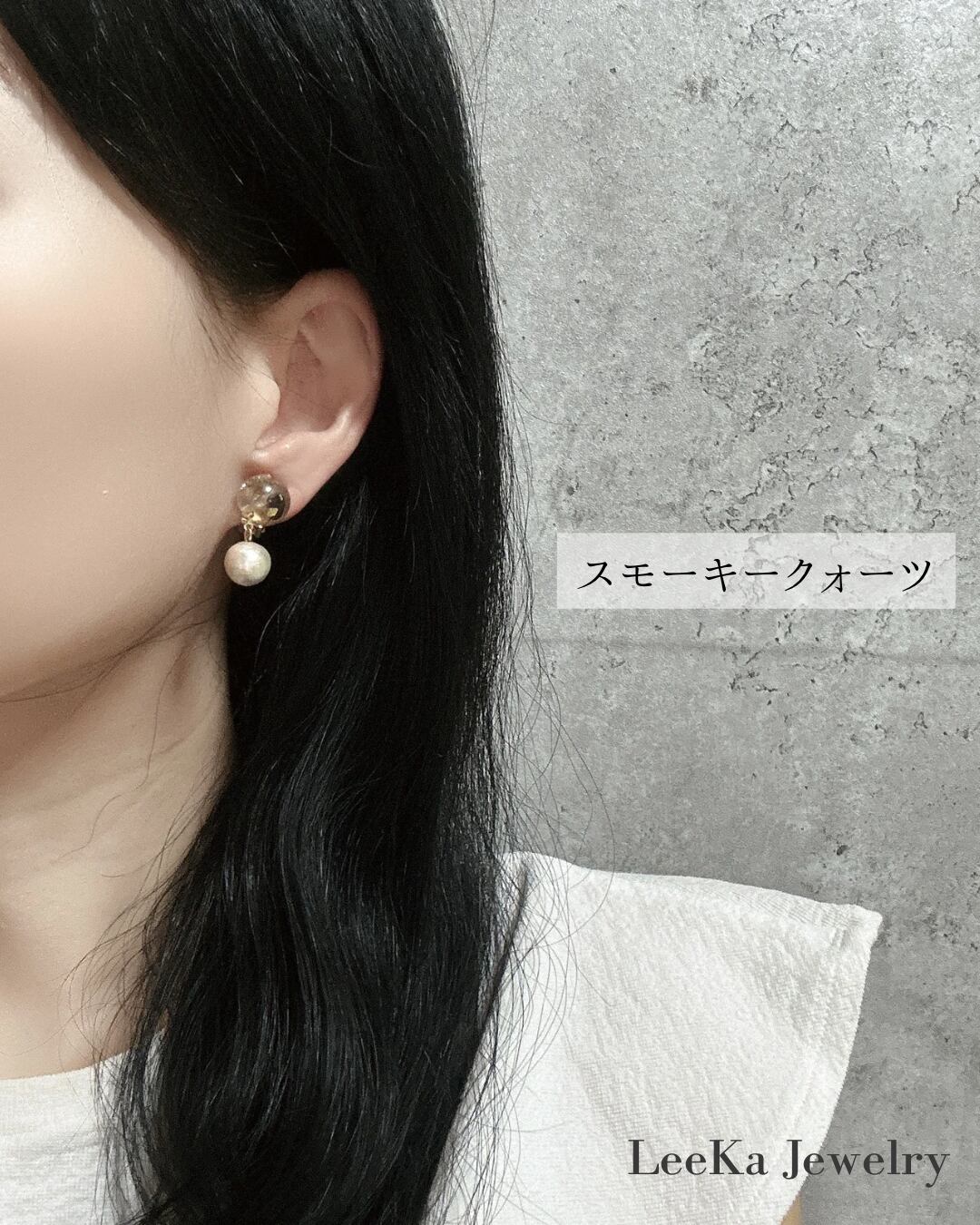 コロンコロン 天然石×コットンパール スモーキークォーツ イヤリング/ピアス