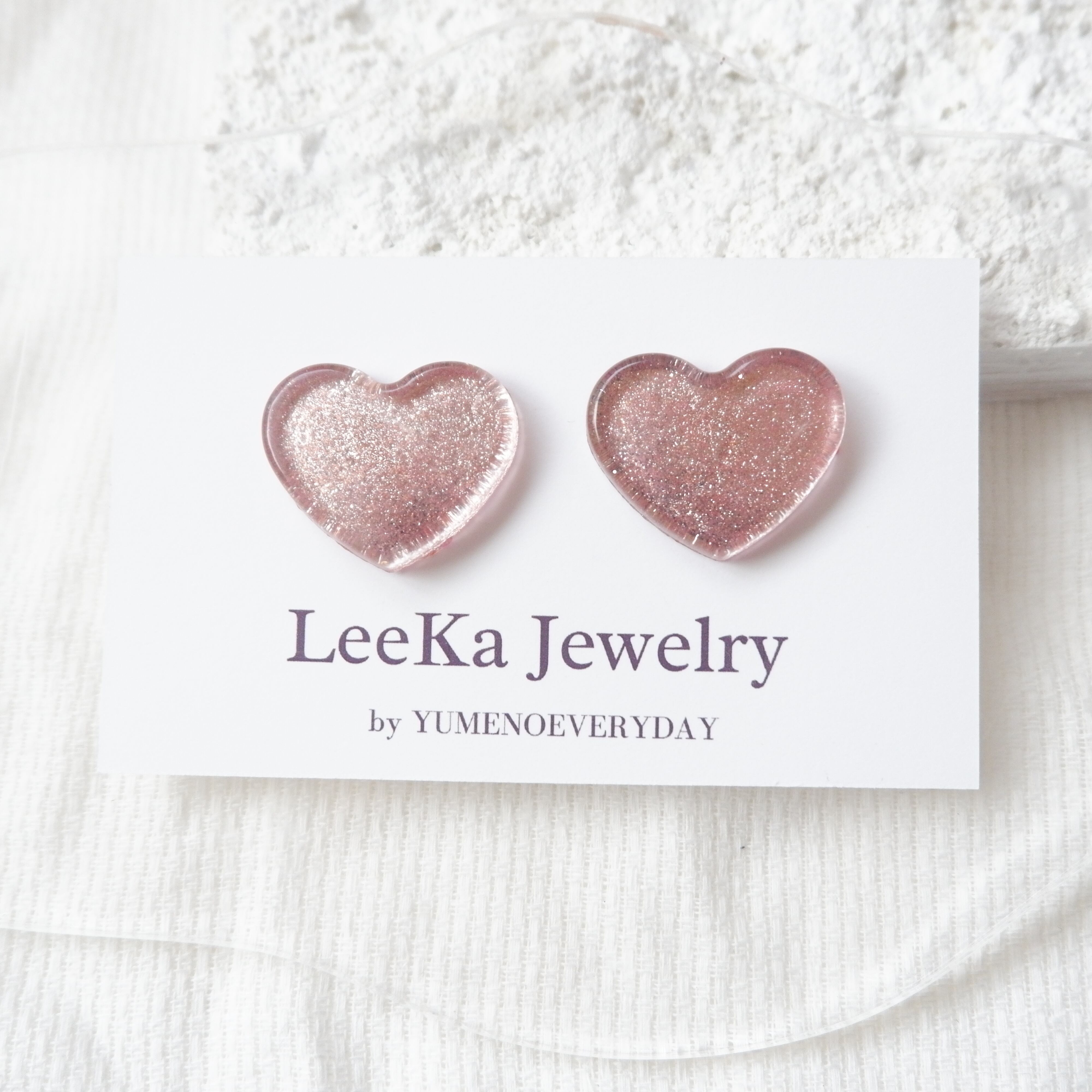 キラキラカラフル ハート シャンパンピンク イヤリング/ピアス