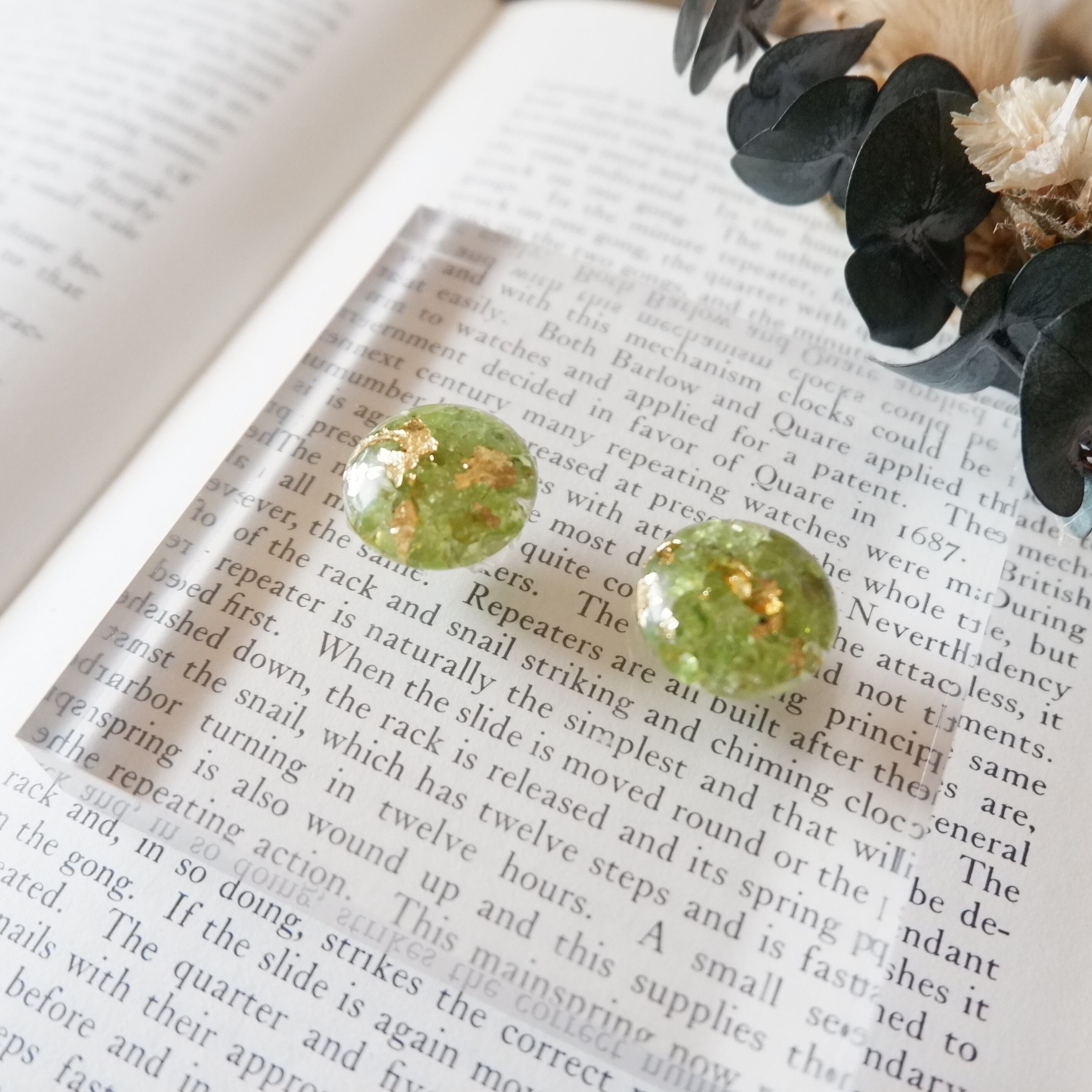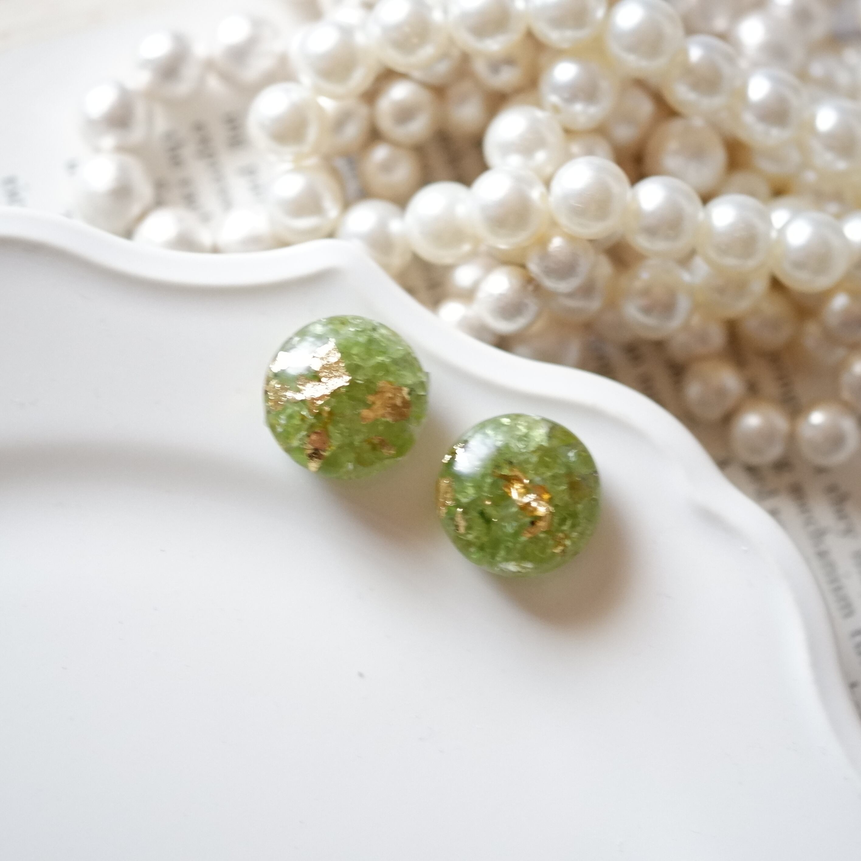 素材:金属、レジン、天然石(ペリドット)、金箔