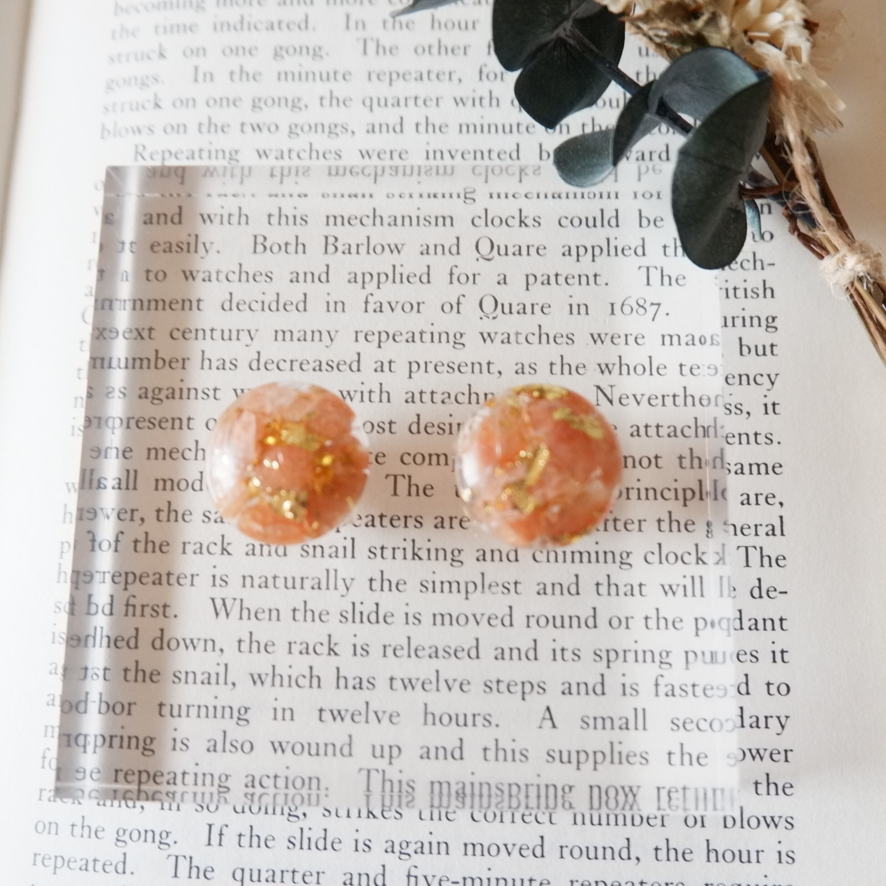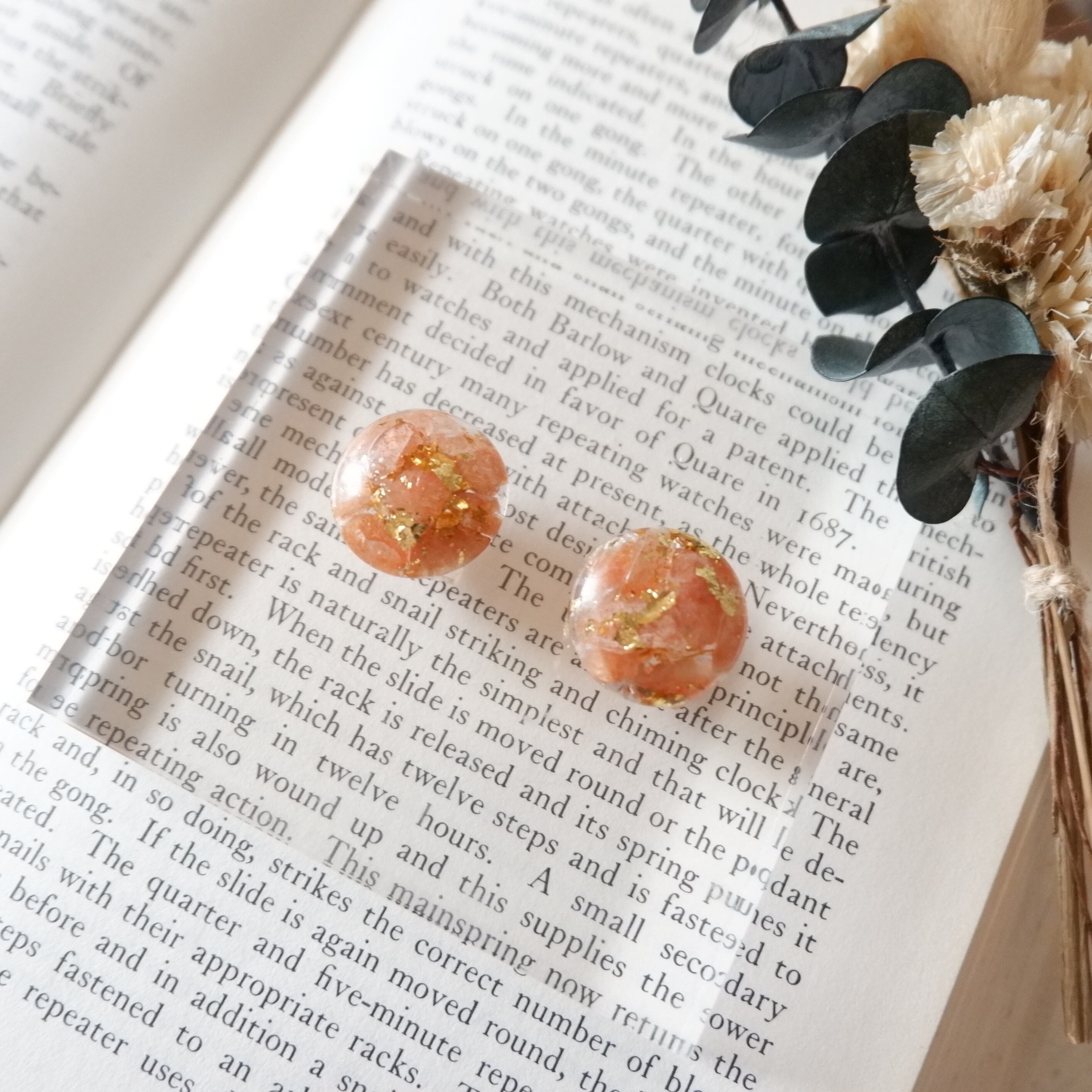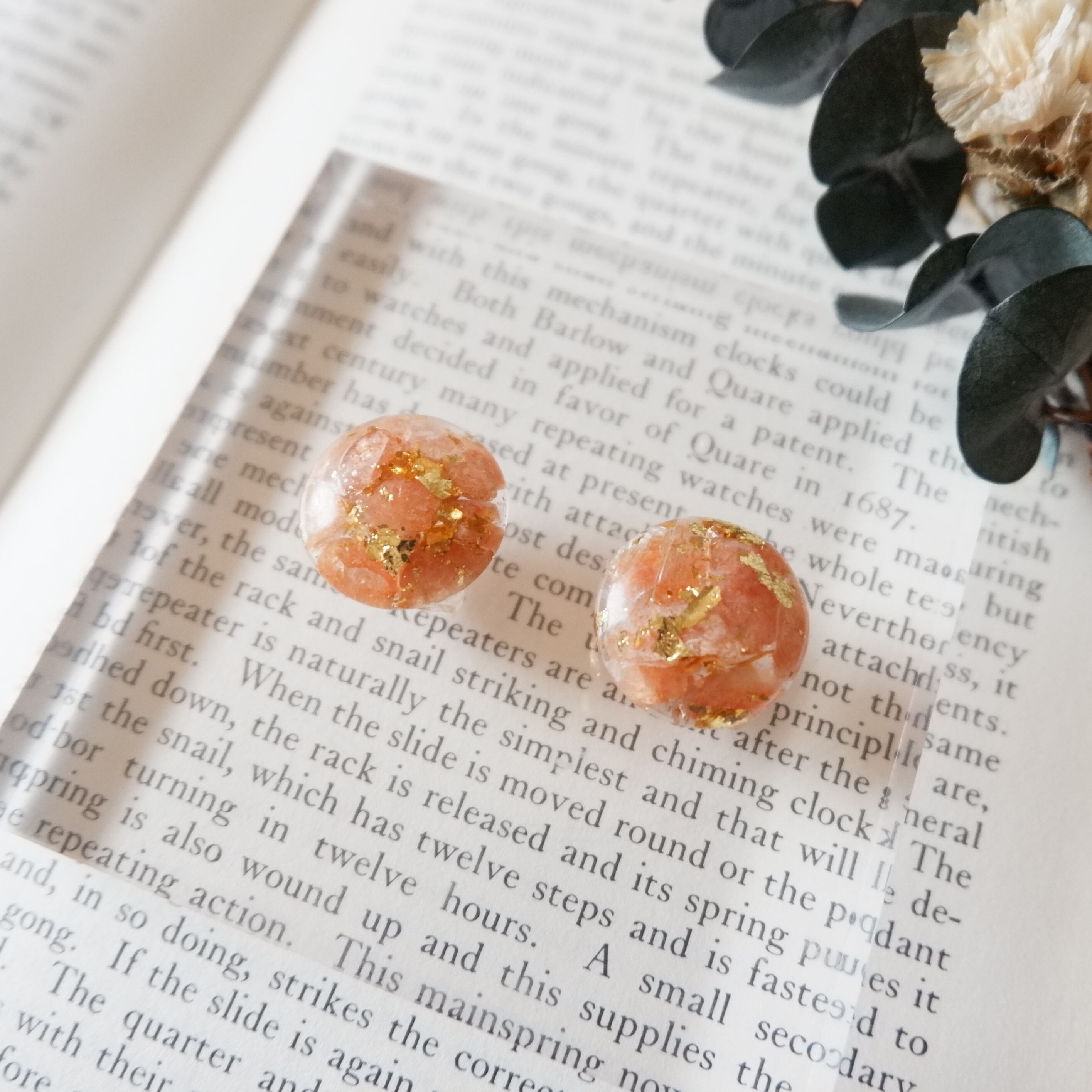 素材:金属、レジン、天然石(サンストーン)、金箔