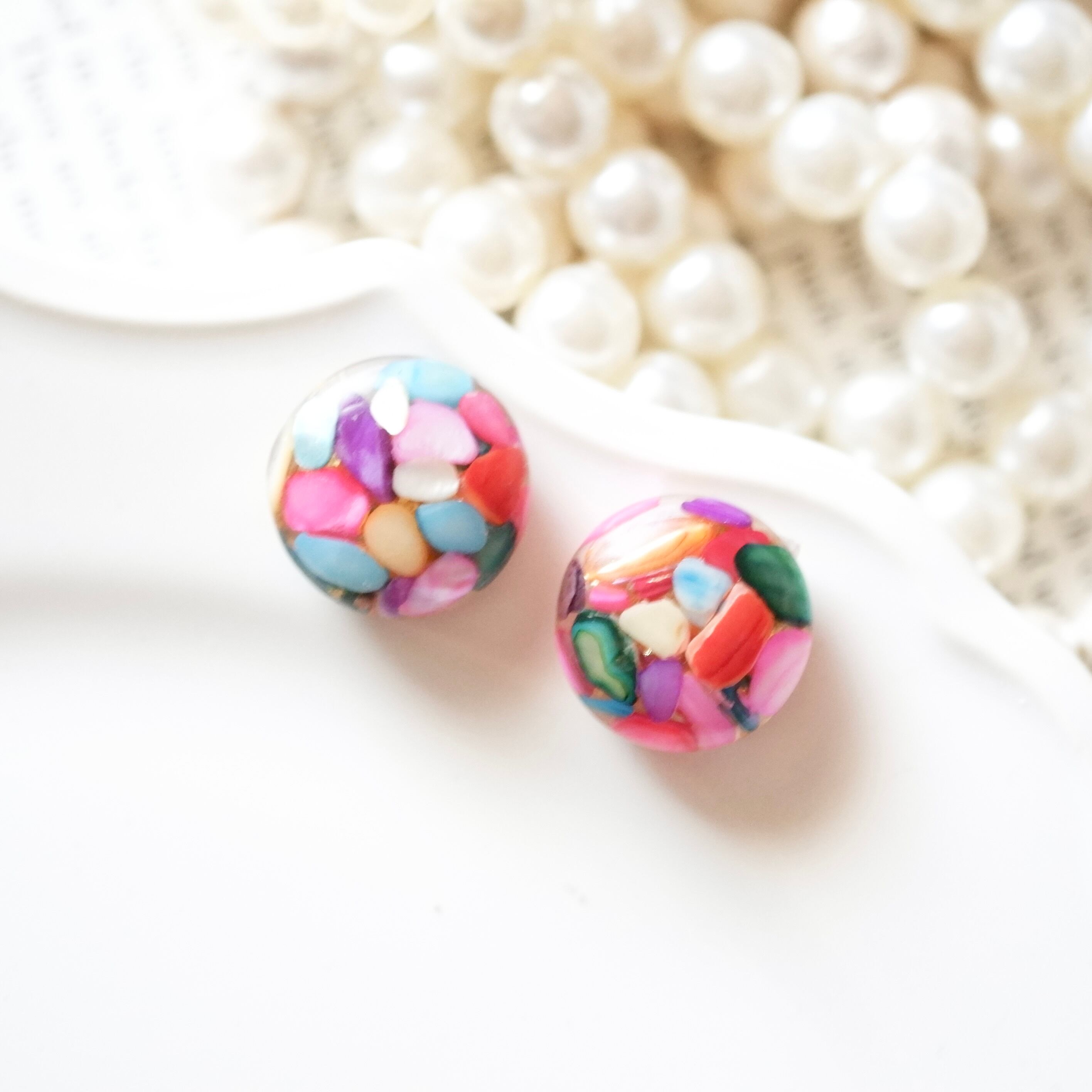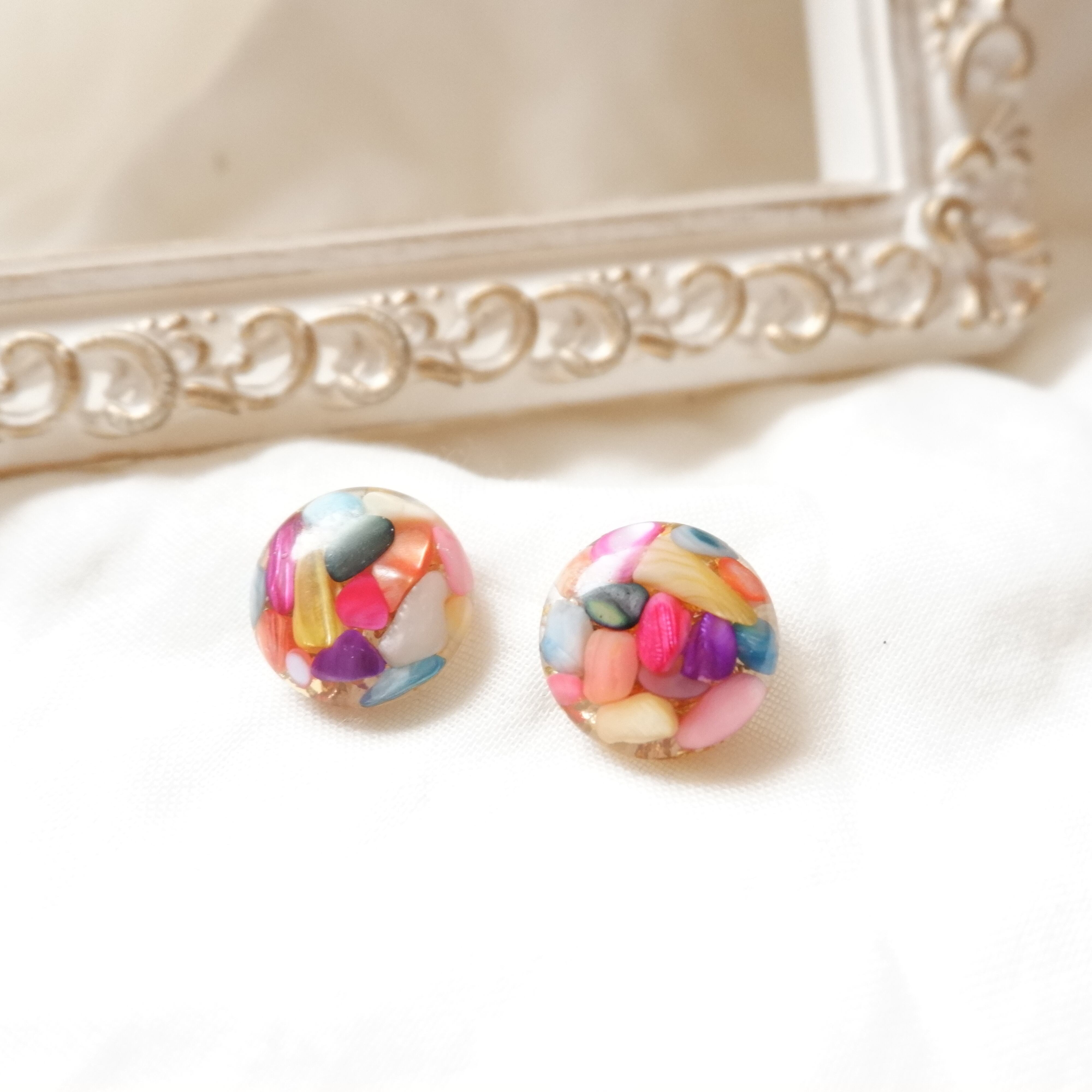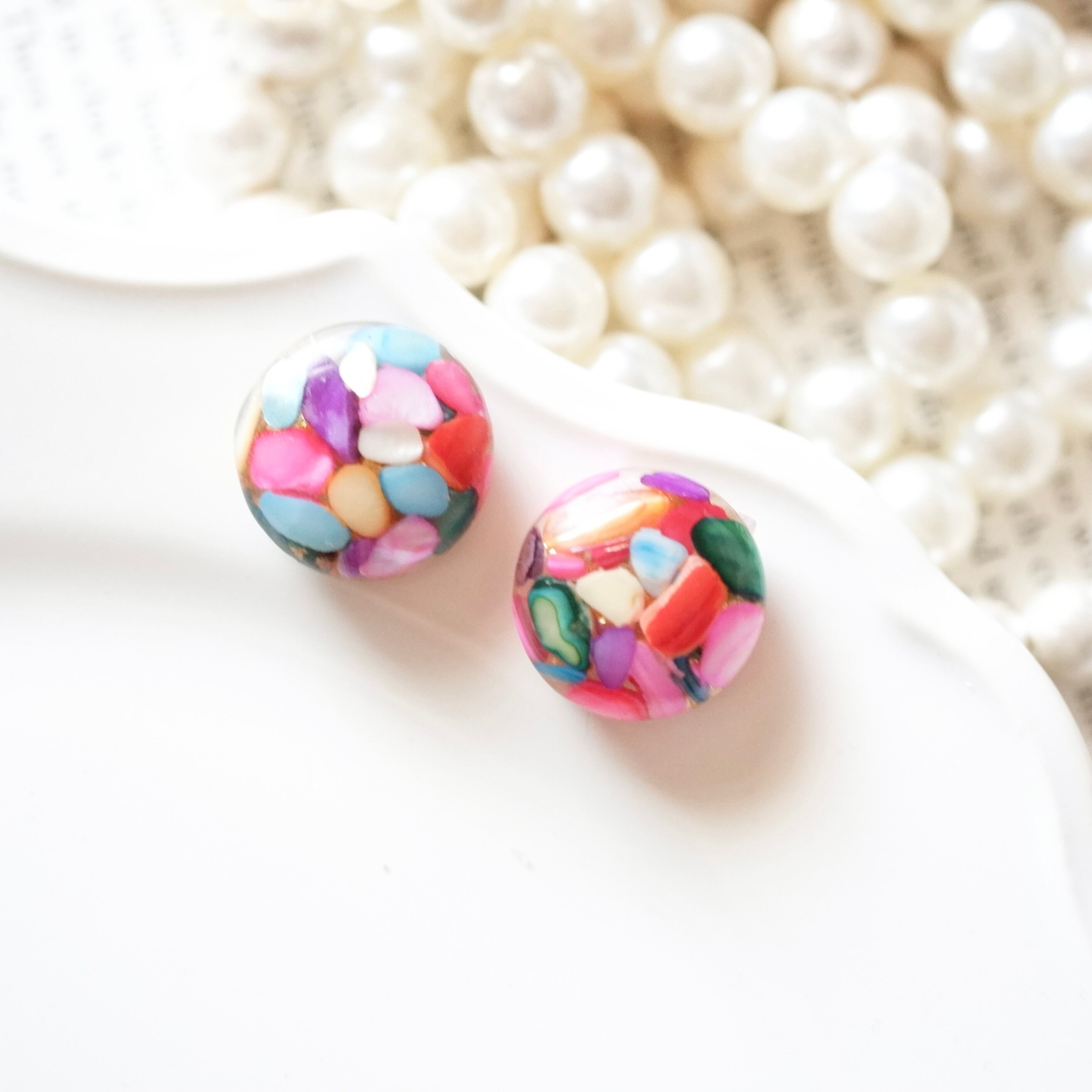 実りの秋 天然石ジュエリー カラフルシェル 大ぶり シンプル 一粒 イヤリング/ピアス 金属アレルギー対応 サージカルステンレス