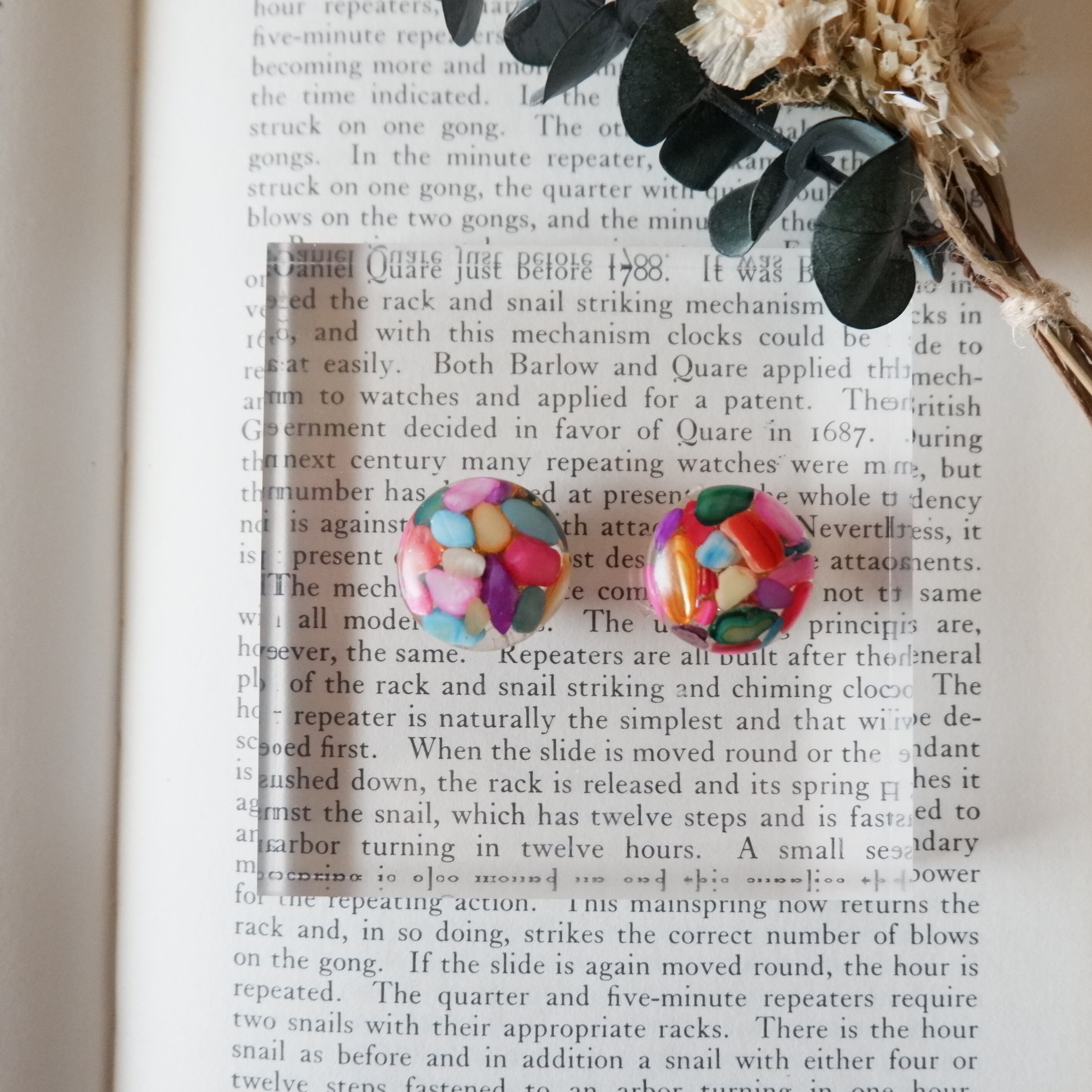 素材:金属、レジン、天然石(カラフルシェル)、金箔