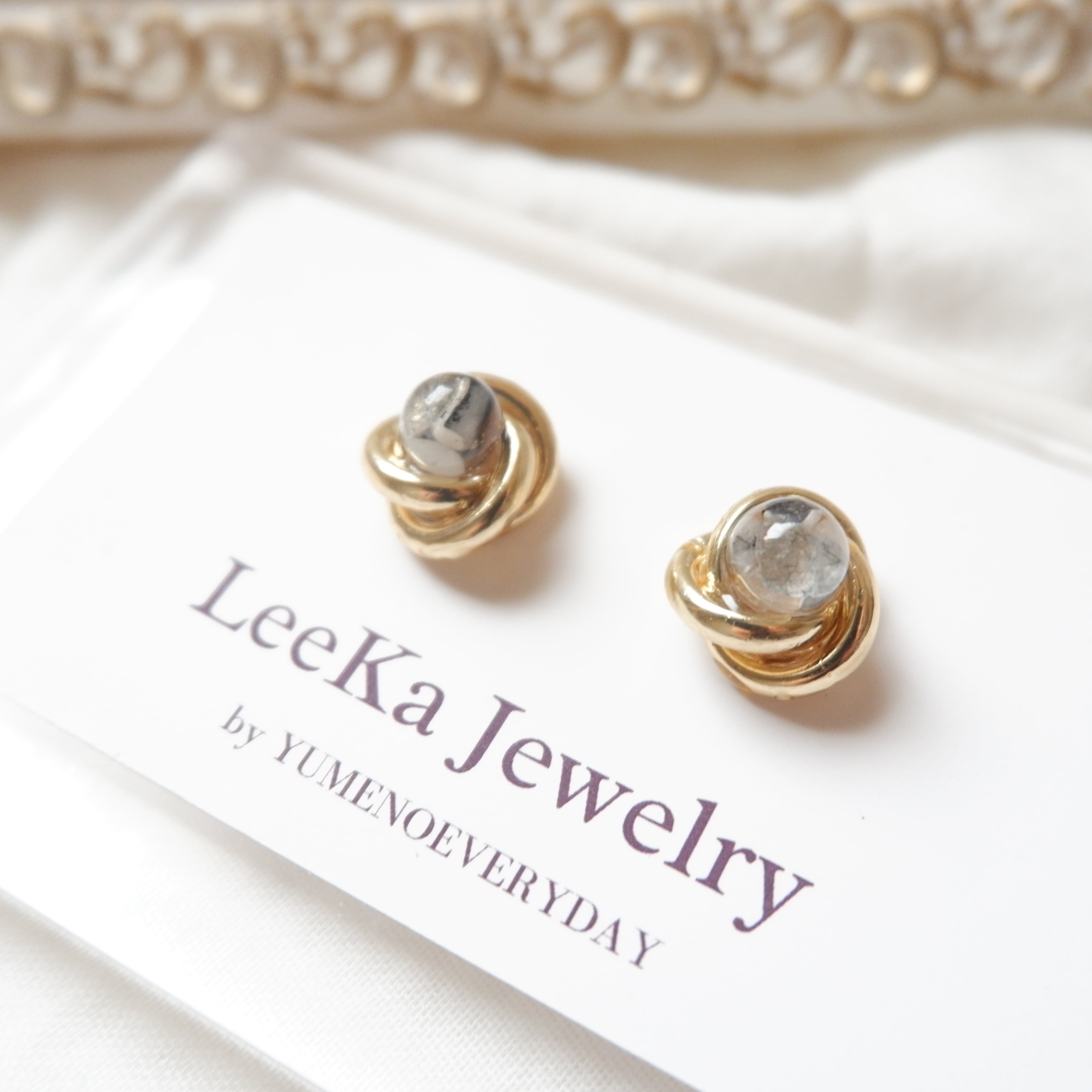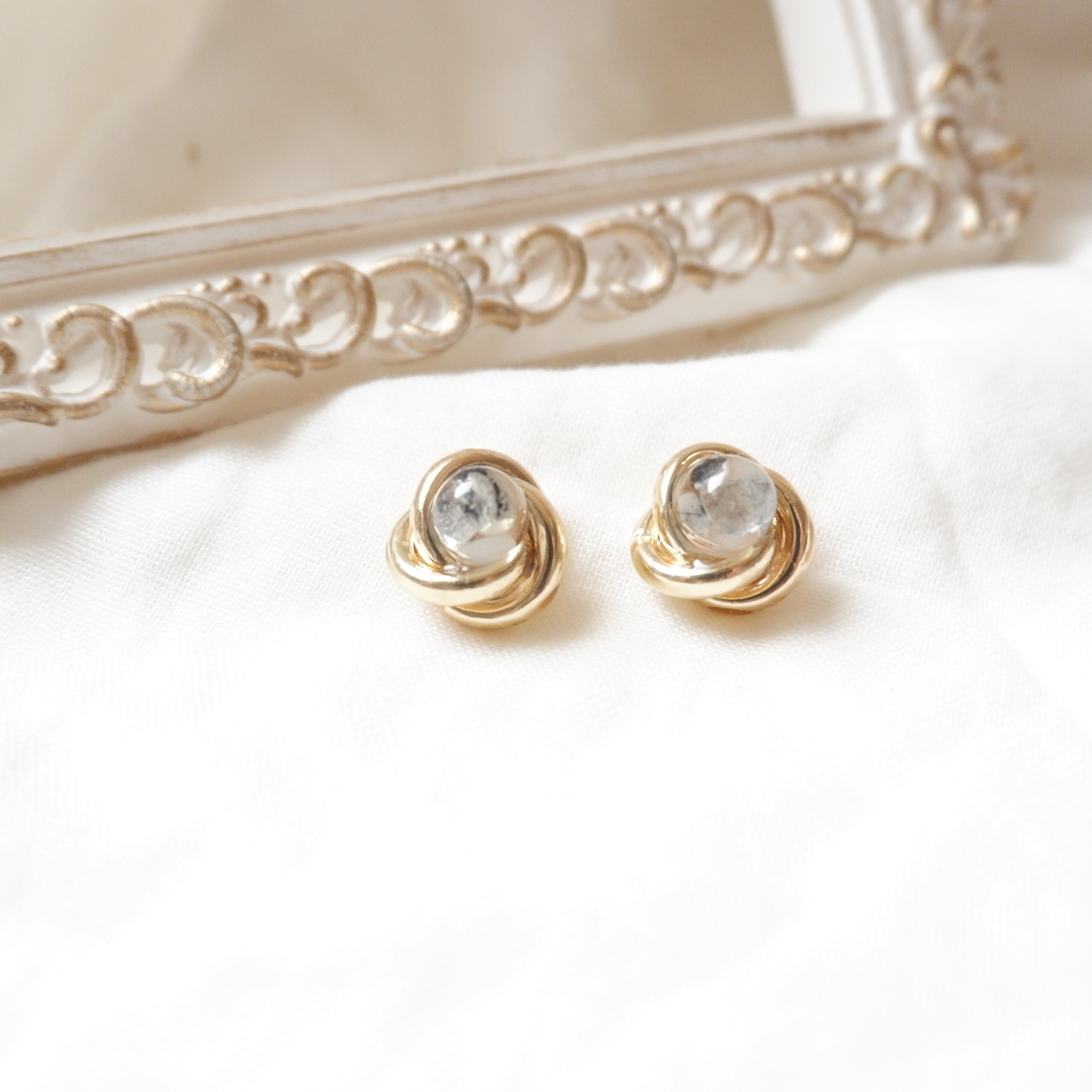 くるんとしたゴールドにちょこんと乗った真ん丸な天然石が可愛い形♡