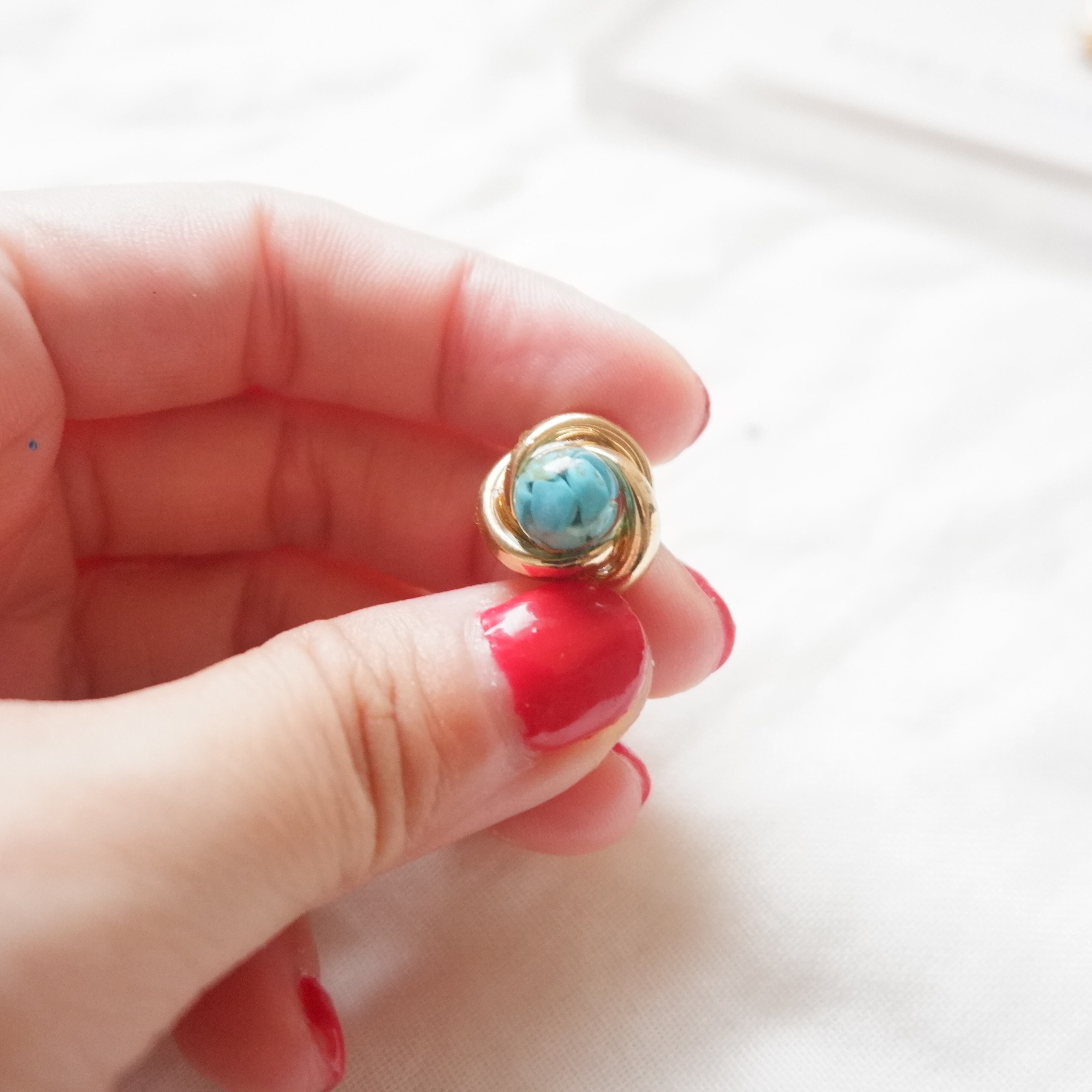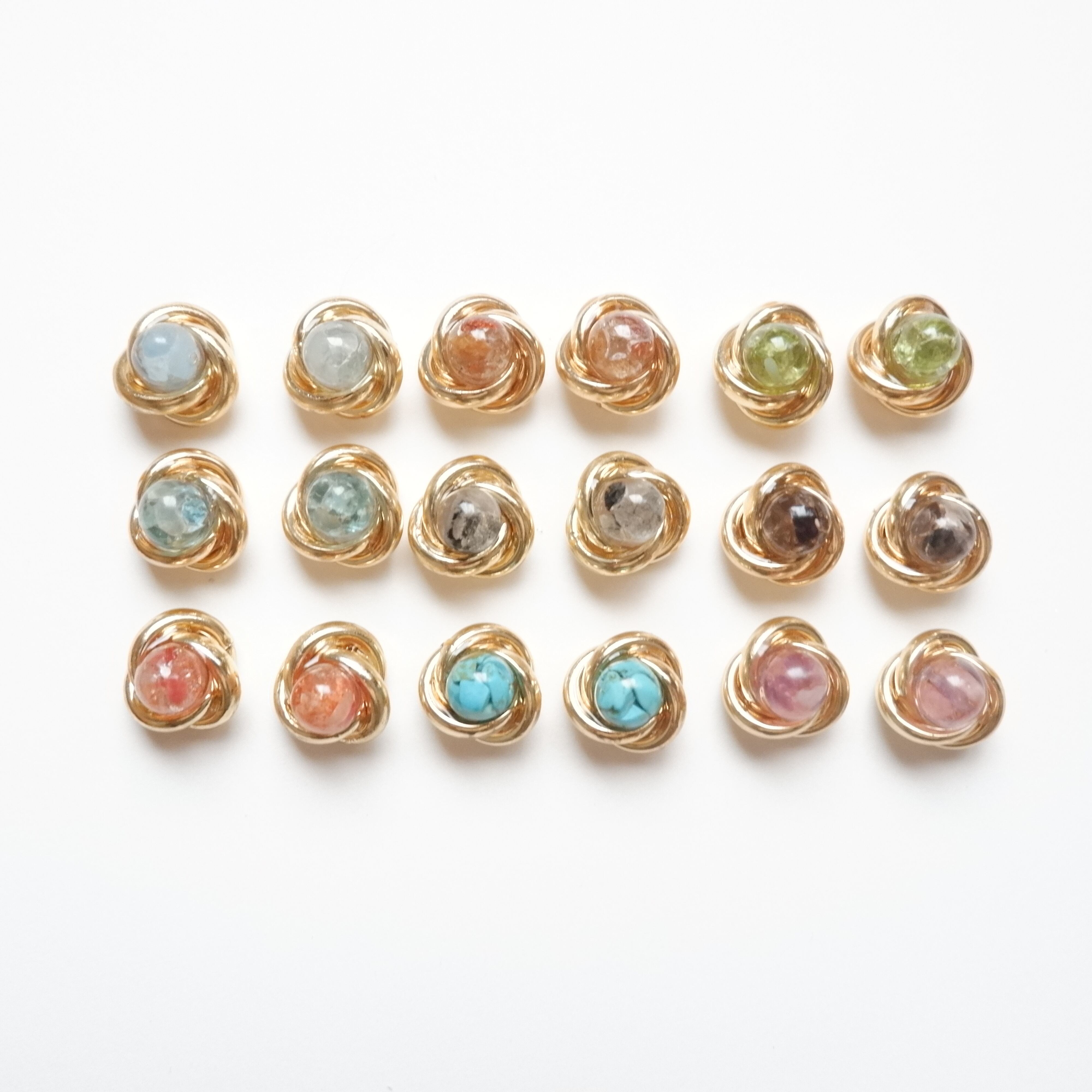 くるんとしたゴールドにちょこんと乗った真ん丸な天然石が可愛い形♡