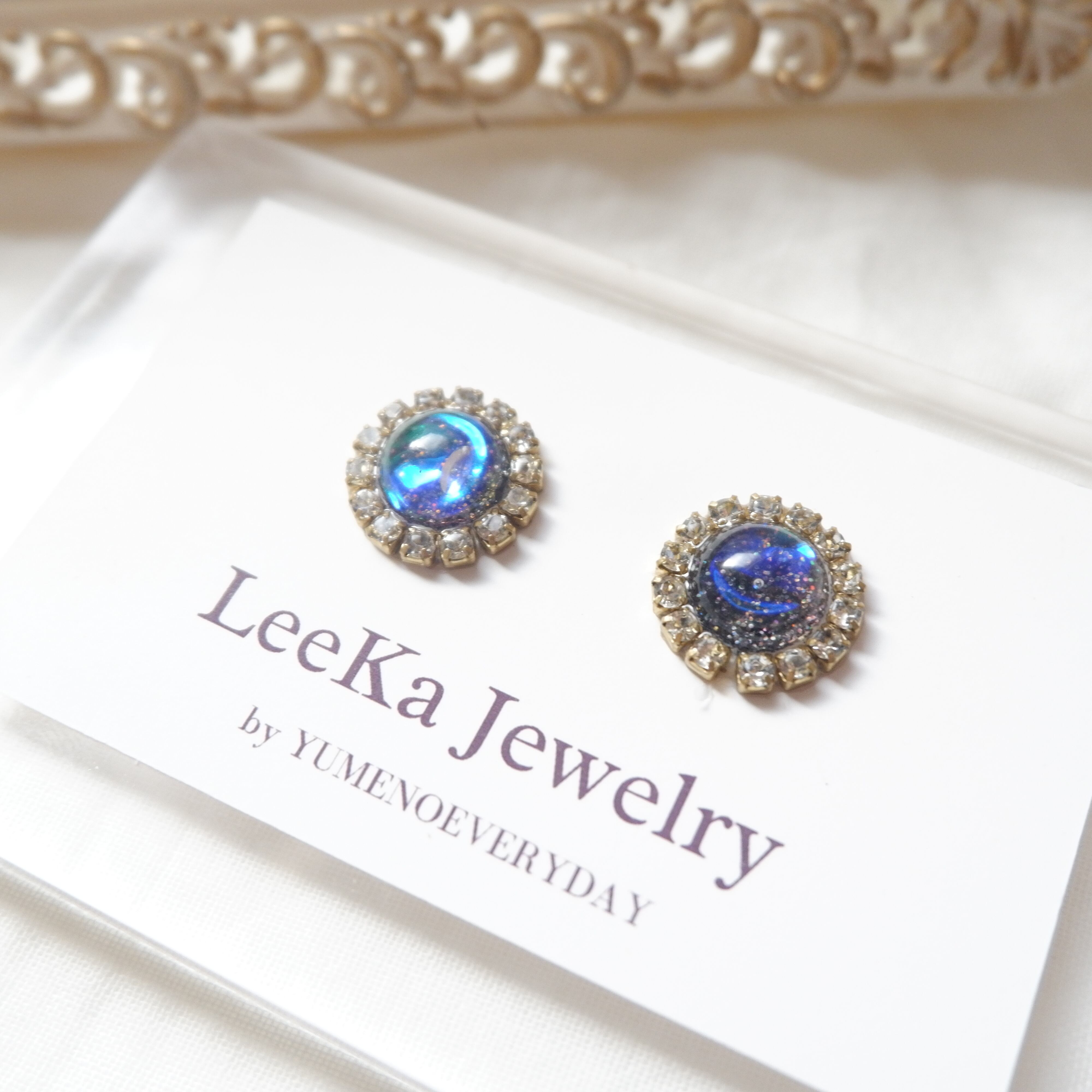 魅惑のきらめき レジンジュエリー オーロラブラック イヤリング/ピアス 金属アレルギー対応 サージカルステンレス