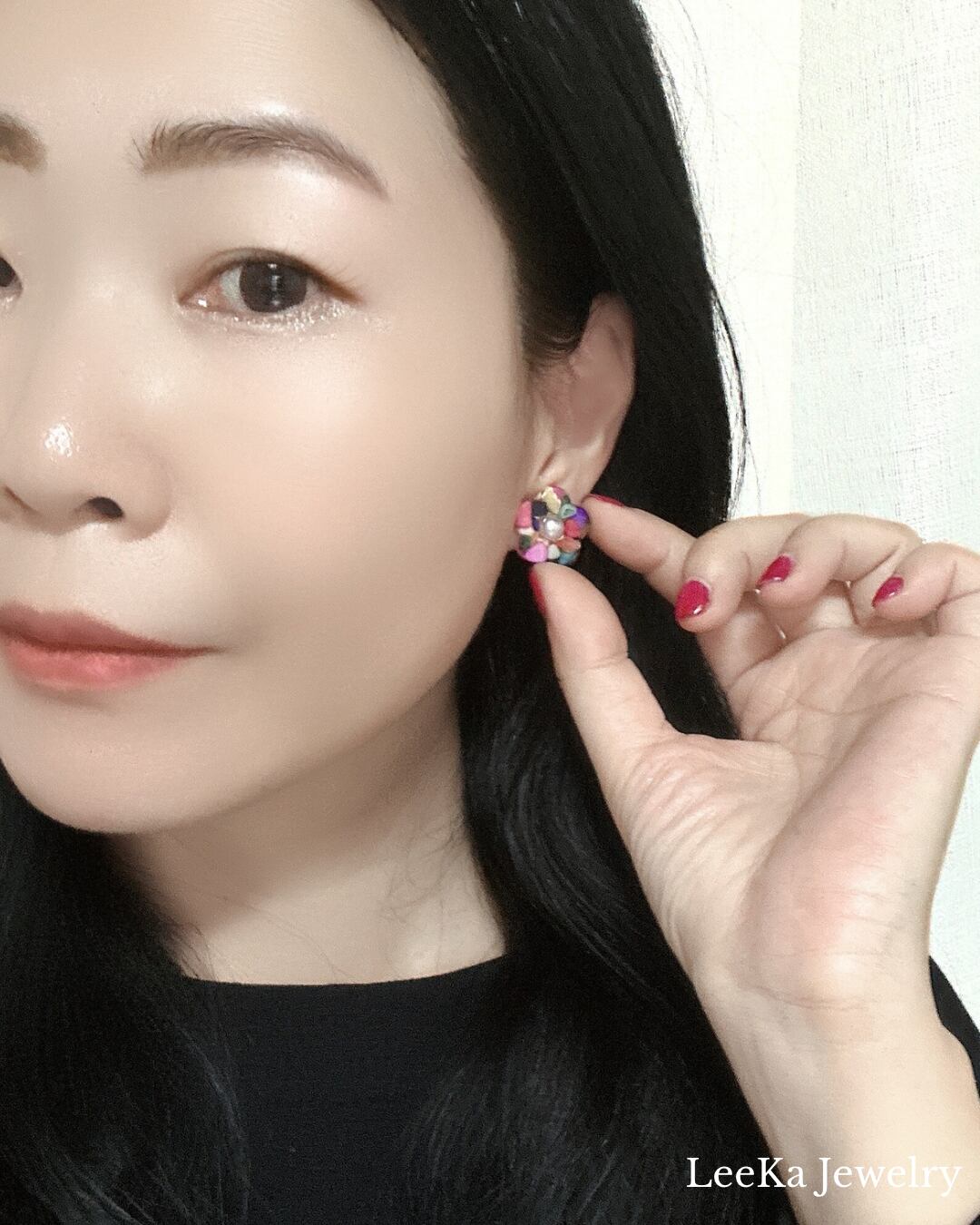 素材:金属、レジン、天然石(カラフルシェル)、パール