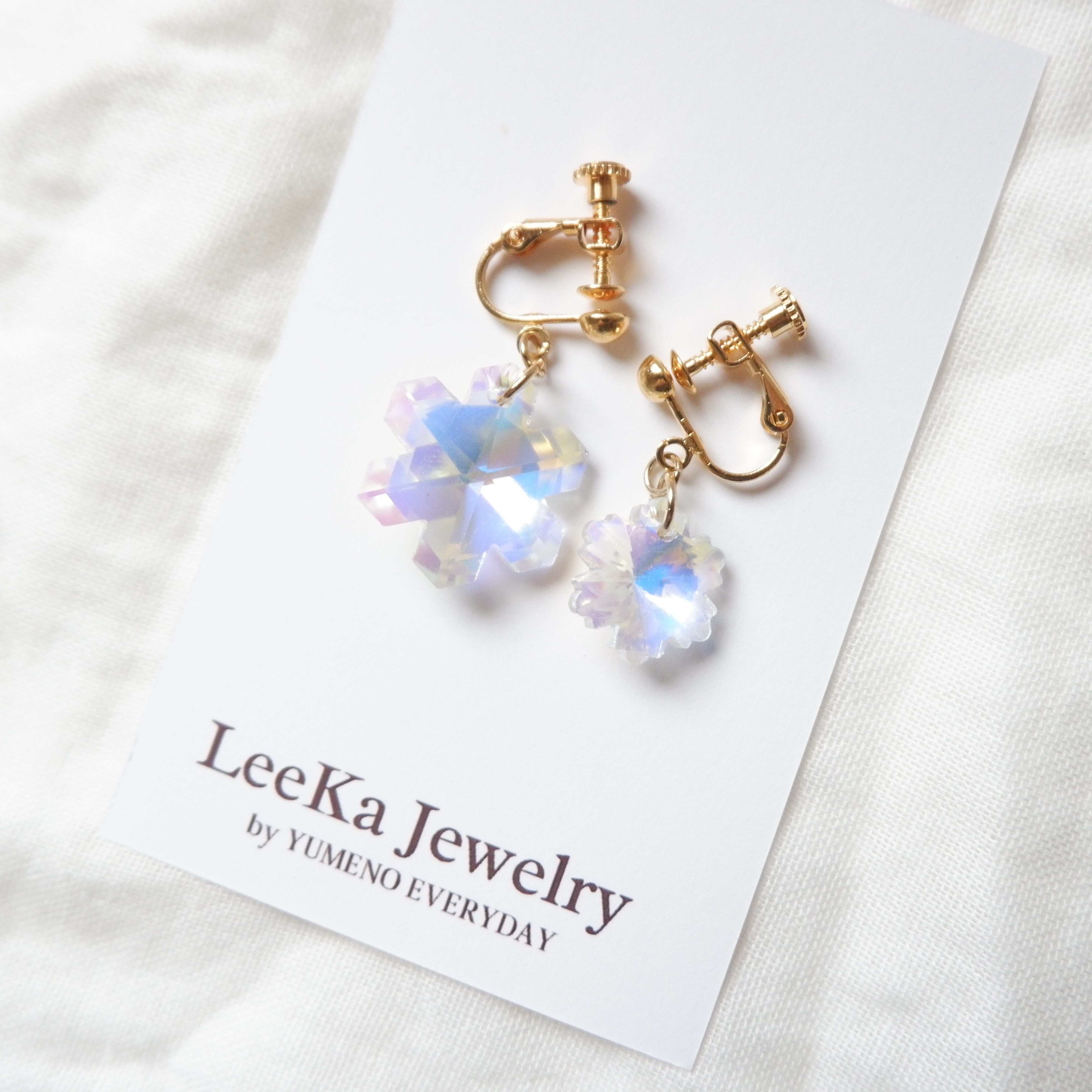 雪の結晶 クリスタルガラス オーロラ 大きめ イヤリング/ピアス