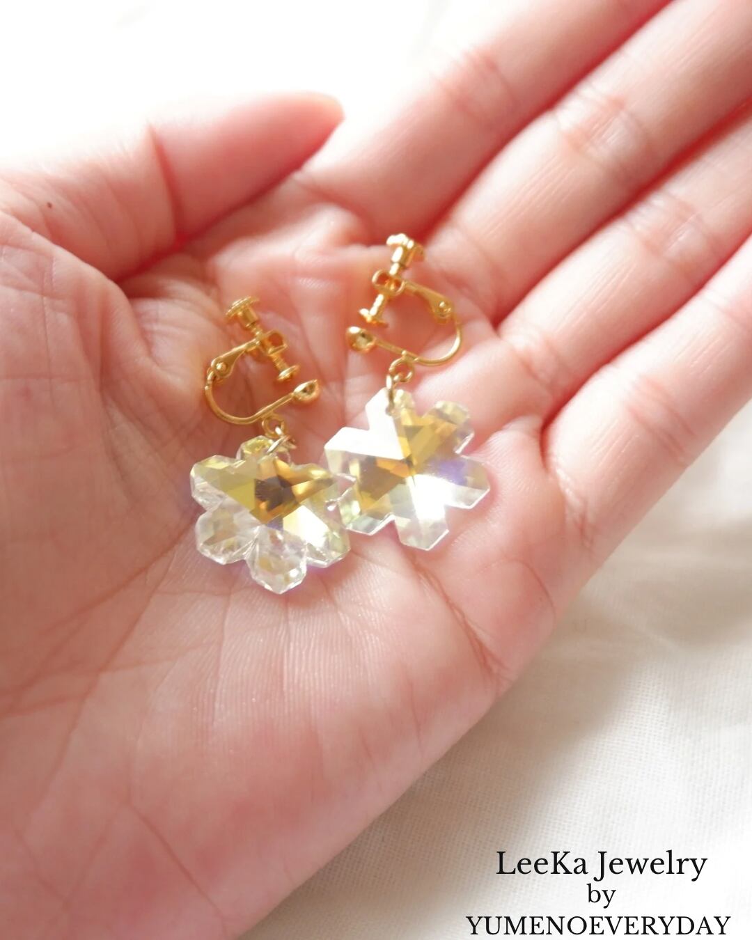 綺麗な雪の結晶の形にカットされ、オーロラ感のあるクリア(透明)はとっても美しく上品です♡
