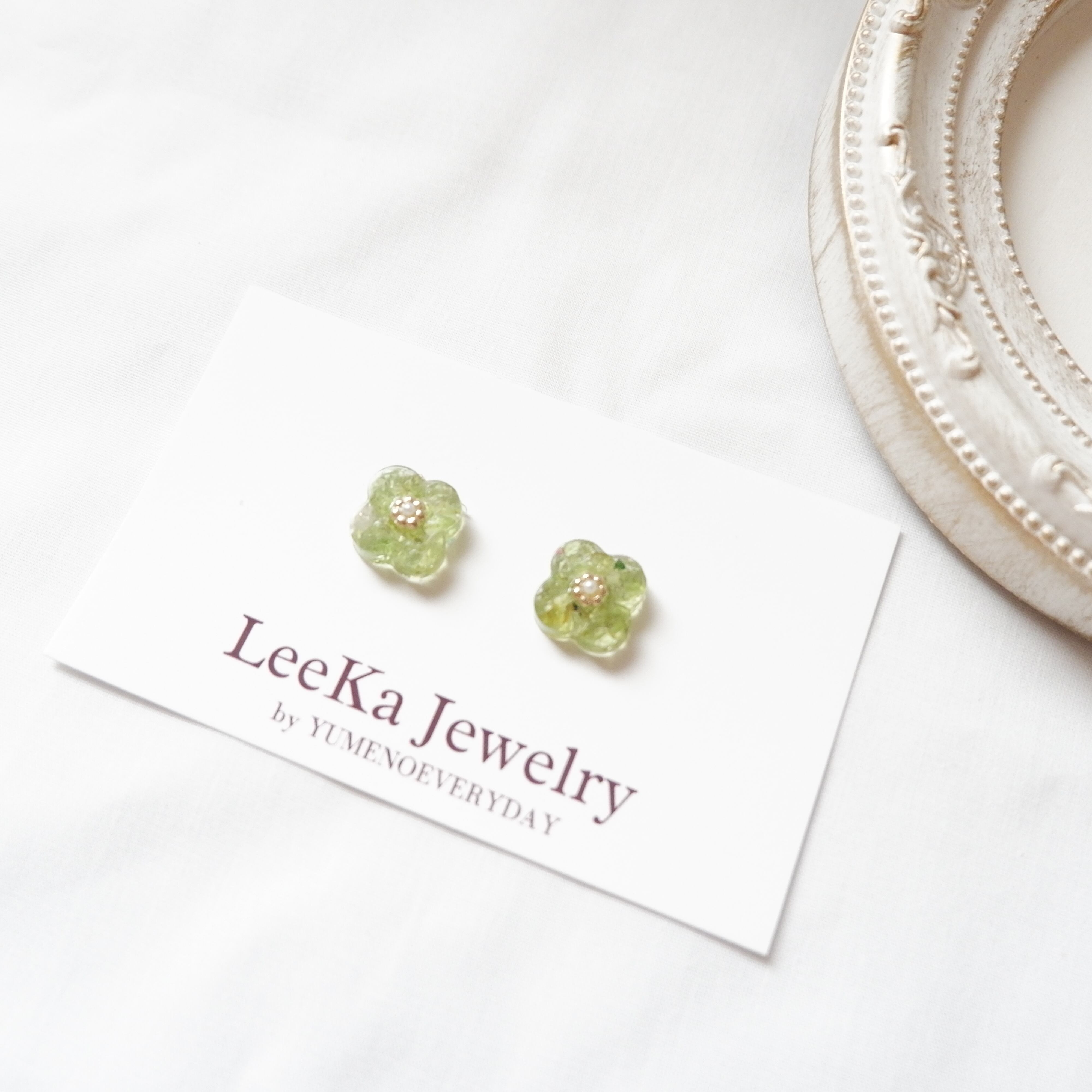 天然石ジュエリー 美濃焼タイル風 ペリドット シンプル 一粒 イヤリング/ピアス 金属アレルギー対応 サージカルステンレス