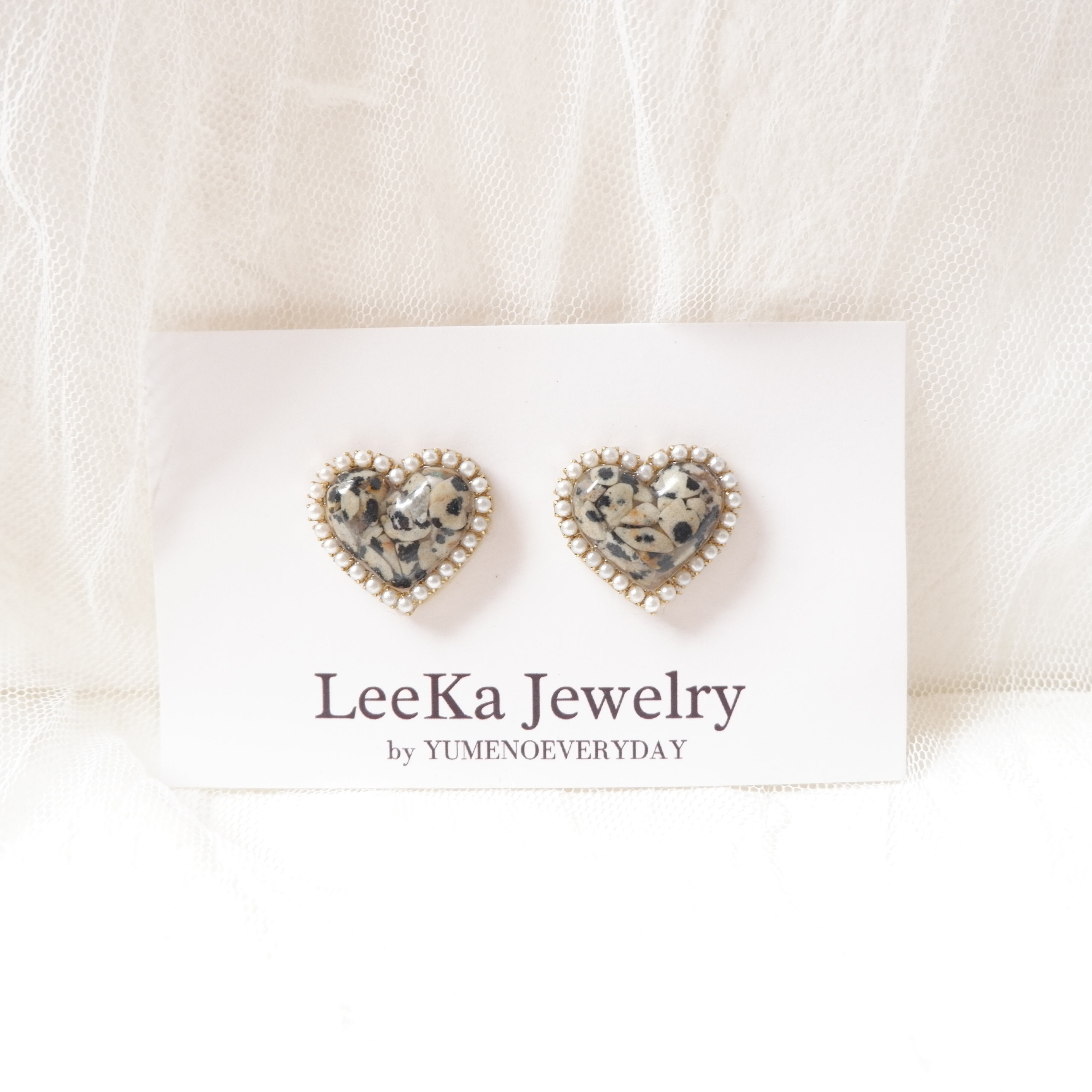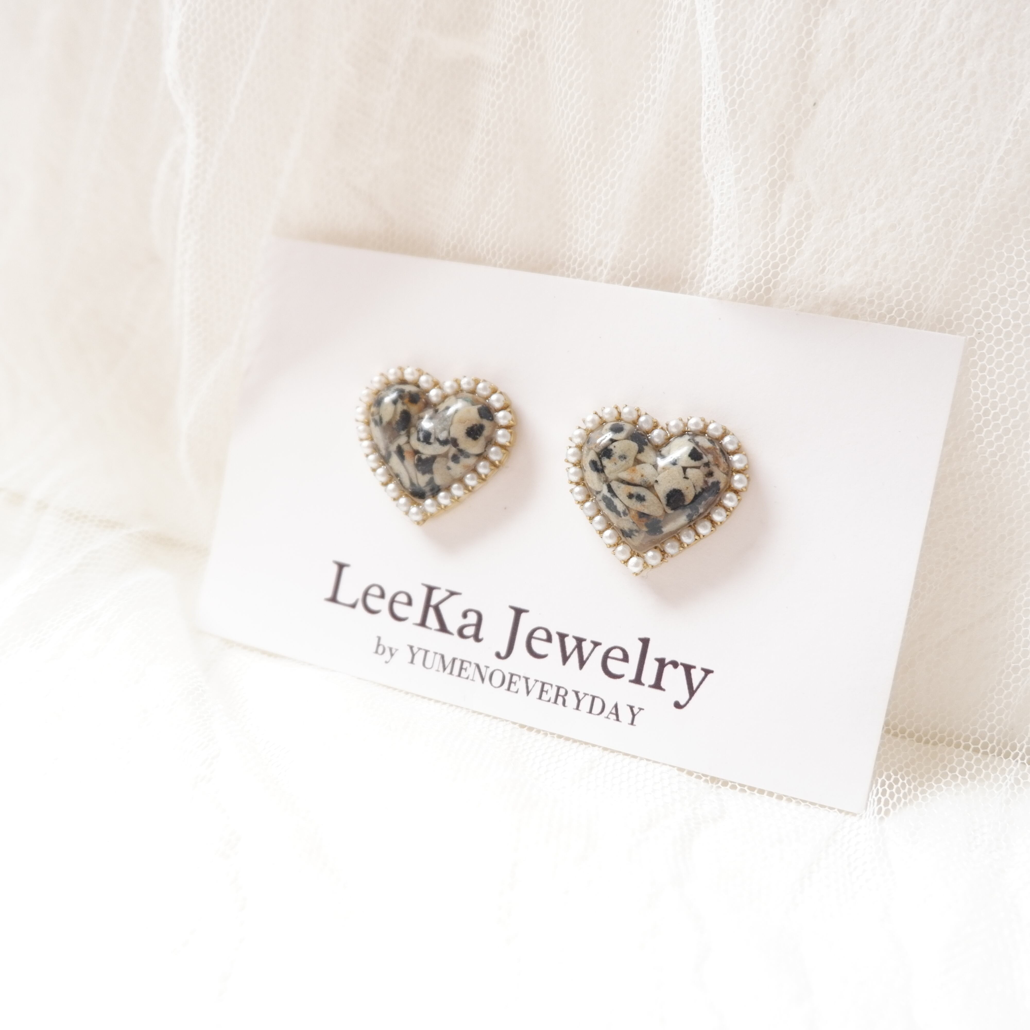 ハートの素材は天然石からシェル(貝殻)、カラーなど様々ご用意しておりますが、パールが上品で大人レディな仕上がりにしてくれます♡