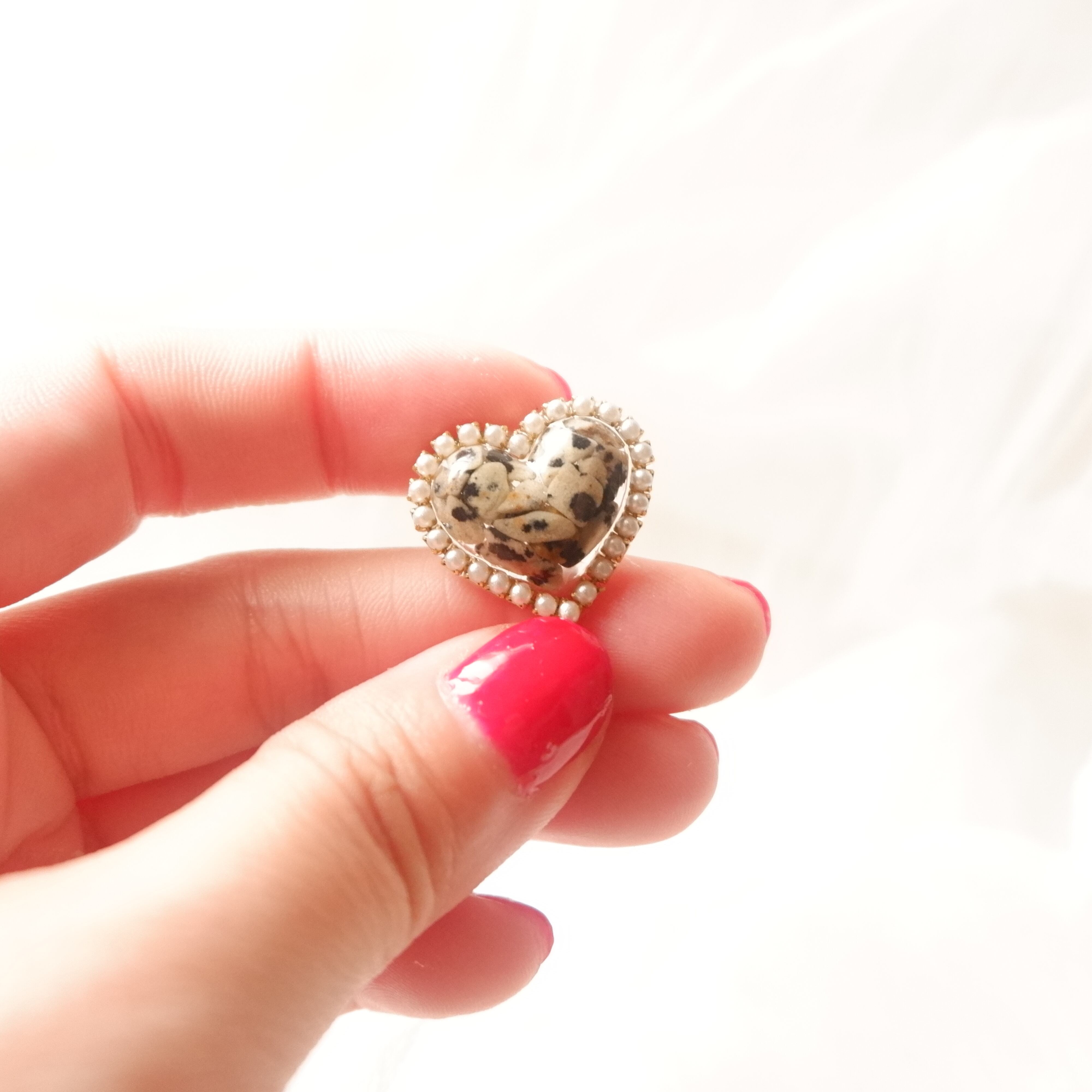 Lady Heart 天然石 ダルメシアンジャスパー さざれ パール ハート 一粒 イヤリング/ピアス 金属アレルギー対応 サージカルステンレス